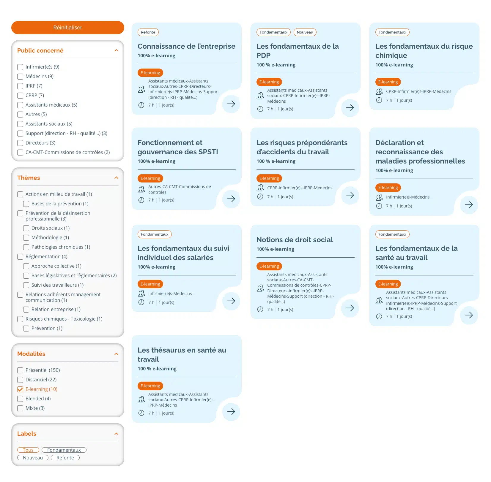 • Filtres par thèmes, publics concernés, modalités…